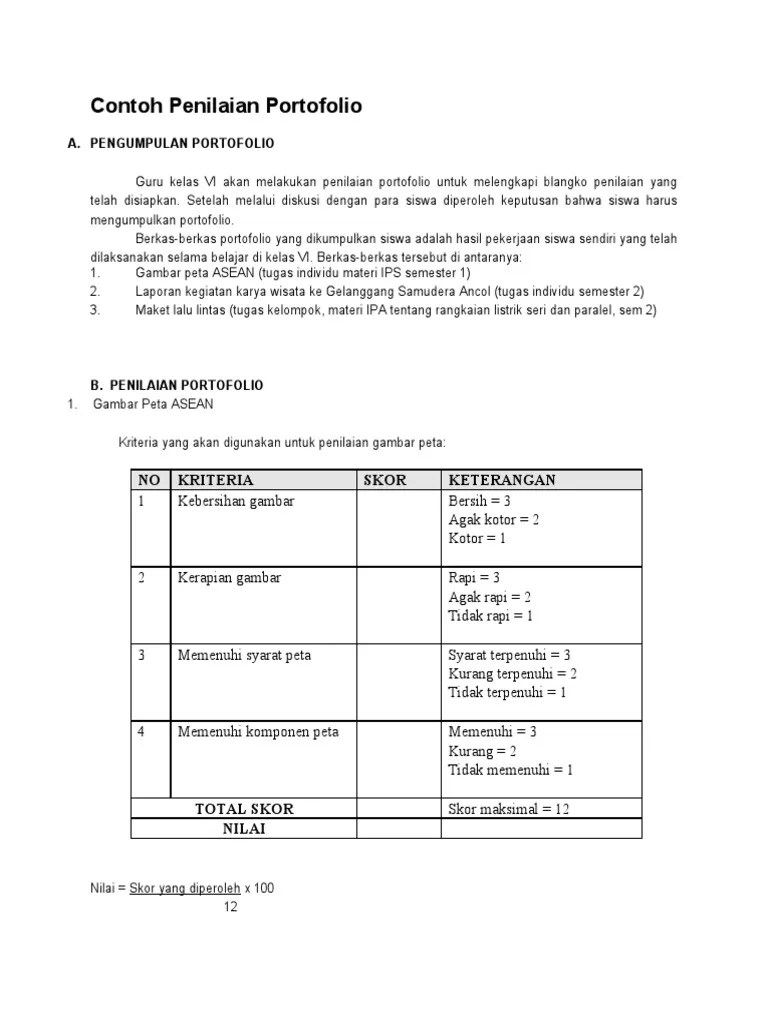 Contoh penilaian portofolio mata pelajaran alokasi waktu : Penilaian portofolio dalam pembelajaran bahasa dan sastra, dapat dilakukan dengan menilai kemampuan. Penggunaan bahasa indonesia yang benar, sederhana dan komunikatif ,. 2) guru tidak mengembangkan kriteria dan format khusus penilaian isi portofolio karena terbatasnya. Secara umum, portofolio ini dievaluasi sebagai contoh karya siswa dalam.